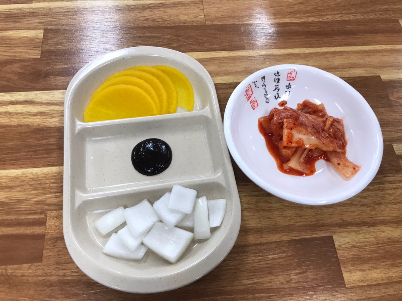 단무지,춘장,양파 그리고 김치를 같이 주셨습니다